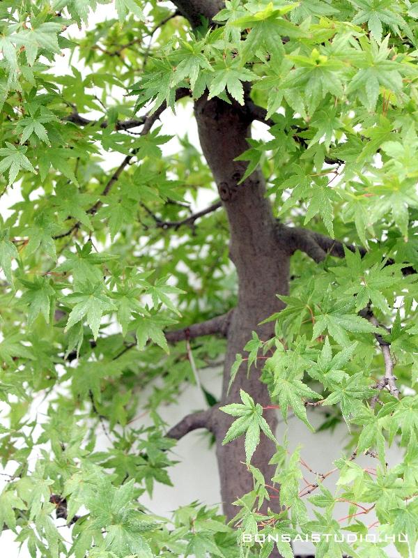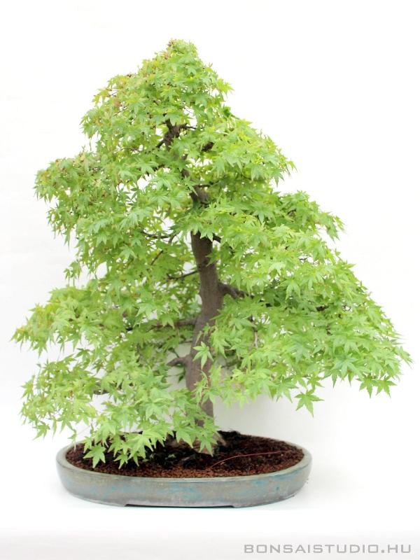 Japán juhar bonsai. Kiforrott, gazdag ágrendszerrel, látványos törzzsel és gyökérrendszerrel / nebari - val rendelkező bonsai fa. Kiállítás érett bonsai, mely gyönyörű kompakt lombsátrat alkot tavaszi kihajtásától őszig. Gyönyörű tavaszi és őszi lombszíne miatt is kedvelt bonsai, levelei és finom ágrendszere miatt nem csak léptékhelyes, de rendkívül részletgazdag látványt nyújt.