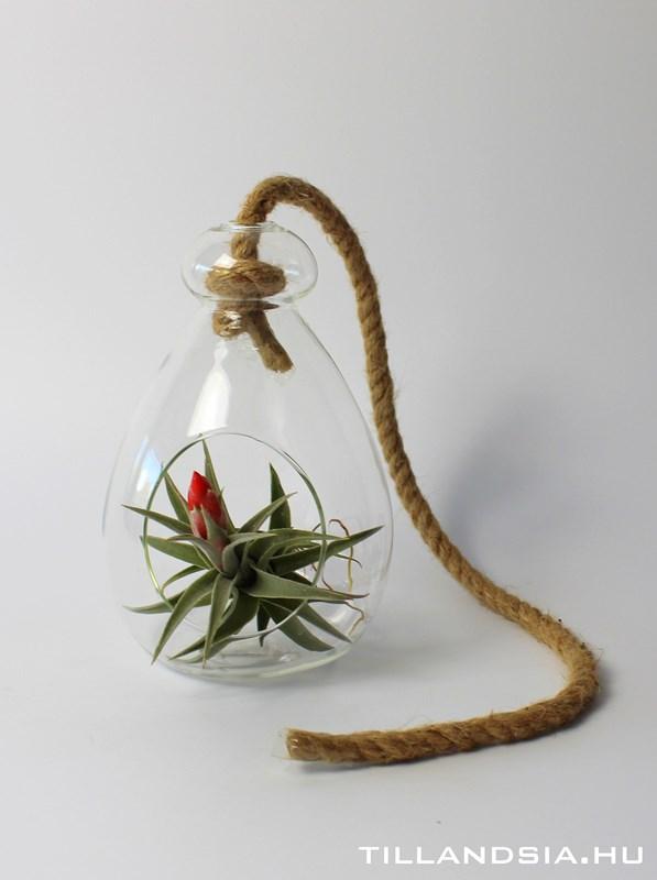 18cm nagyságú felfüggeszthető üvegben lévő Tillandsia edithae. A dekoratív airplant kompozíció kellemes és dekoratív pontja lehet otthonunknak, nappalinknak, étkezőnknek, vagy akár fürdőszobánknak vagy konyhánknak. Kitűnő ajándék lehet bármilyen alkalomra.