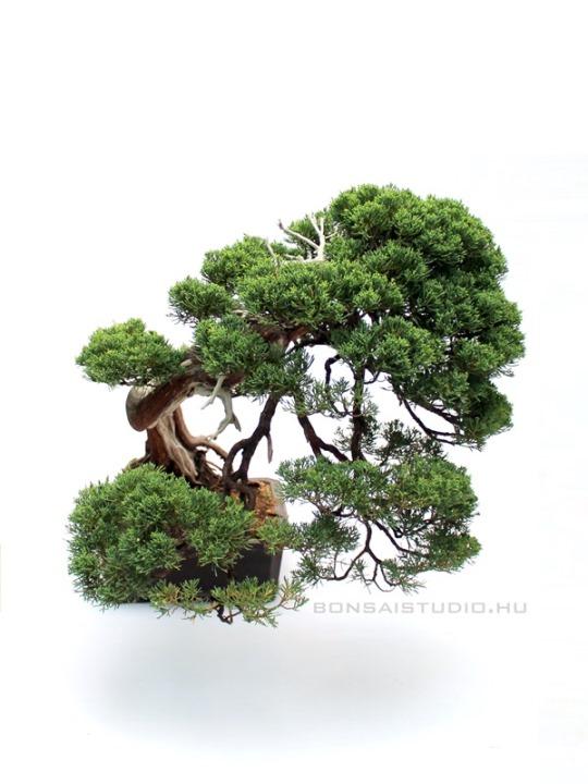 Ez a bonsai tállal együtt 62.5 cm magas boróka bonsai, hangulatában (kimondottan) japán bonsai benyomását kelti, fejezi ki. Szépen kidolgozott ágszintjeivel, a törzsén futó sharival és mozgalmas deadwood részleteivel, jineivel kiállítás érett boróka bonsai.